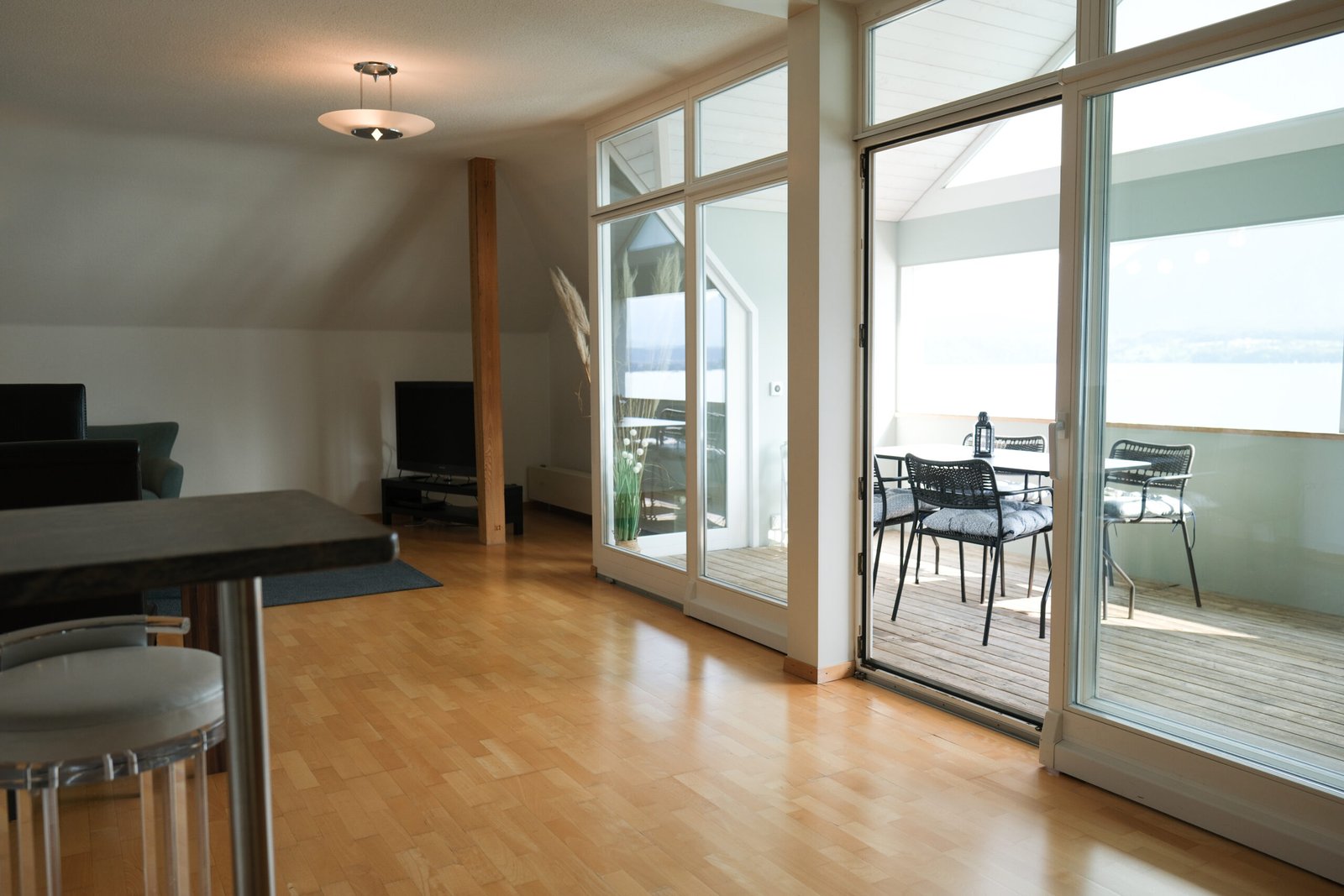 Die Ferienwohnung Bellevue bietet bis zu 4 Schlafmöglichkeiten und einen einmaligen Ausblick über den Thunersee und die Berge – Ihr Traumurlaub kann starten!